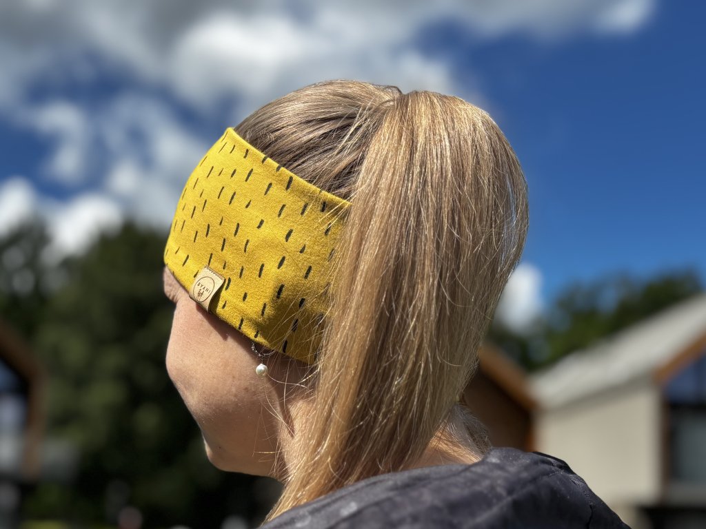 Pohodlná, pružná a ručně šitá – čelenka „Medové tečky“ je navržená tak, aby potěšila každý den. Hodí se na výlet, ke sportu i jen tak na běžné nošení. Díky pružnému střihu se snadno přizpůsobí a drží na místě. Čelenka, která voní po podzimu, medu a troše divokosti. Hřejivý hořčicový tón doplněný většími černými tečkami vytváří neodolatelný kontrast.